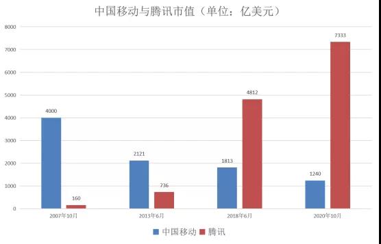 從這張圖可以看到,中國(guó)移動(dòng)和騰訊都是移動(dòng)互聯(lián)網(wǎng)時(shí)代的企業(yè),但是對(duì)移動(dòng)互聯(lián)網(wǎng)紅利的收獲結(jié)果不一樣,是什么因素影響這兩家公司在市場(chǎng)上的表現(xiàn)此消彼長(zhǎng)呢?