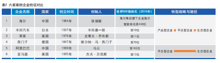 本文選取六家分別來(lái)自中國(guó)、美國(guó)、德國(guó)和日本的“變革巨人”進(jìn)行深度研究,這些案例分別是:海爾、阿里巴巴、蘋果、亞馬遜、西門子、豐田汽車。