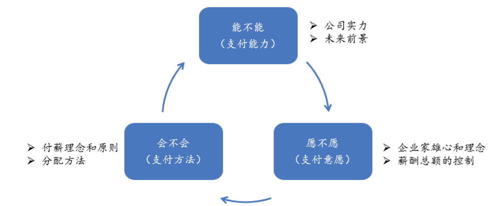 “愿不愿”體現(xiàn)的是企業(yè)的支付意愿。公司很有實(shí)力也很有前景,但如果企業(yè)家或者高管的雄心、分享意識(shí)不夠,或者認(rèn)為手下的員工不值得分享更多的薪酬,那也會(huì)很大程度上影響薪酬激勵(lì)的效果。