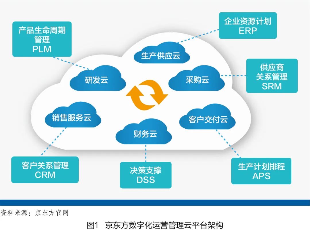 近年來(lái),京東方通過(guò)優(yōu)化運(yùn)營(yíng)管理機(jī)制及端到端流程體系、強(qiáng)化IT系統(tǒng)支撐、盤(pán)活數(shù)據(jù)資產(chǎn),構(gòu)建數(shù)字化運(yùn)營(yíng)管理云平臺(tái)(如圖1所示),持續(xù)推進(jìn)運(yùn)營(yíng)管理數(shù)字化、智能化。