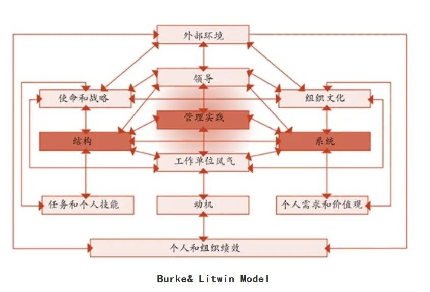 該模型是W. Warner Burke 和 George H. Litwin兩位管理咨詢(xún)顧問(wèn)1992年提出,該模型包含12個(gè)盒子,比“六個(gè)盒子”翻了一倍。