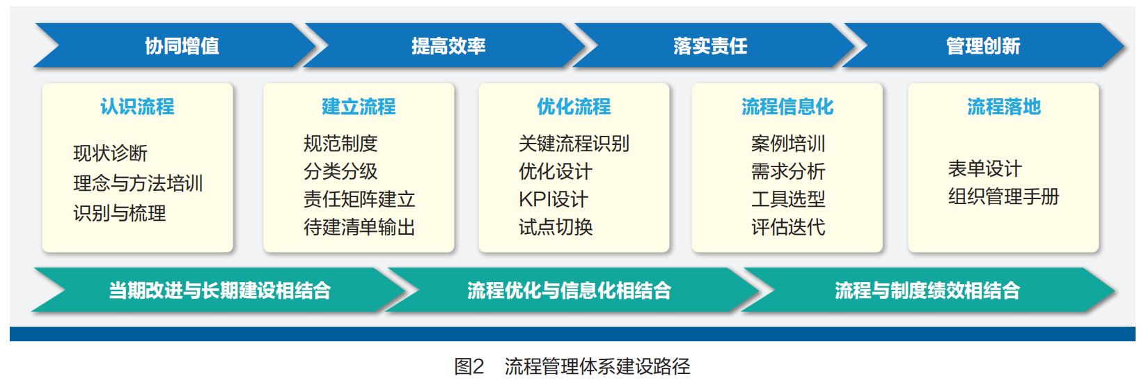 本部分從實(shí)操角度闡述中小企業(yè)建立流程管理體系建設(shè)的五條具體路徑,即認(rèn)識(shí)流程、建立流程、優(yōu)化流程、信息化流程、運(yùn)作流程,如圖2所示。